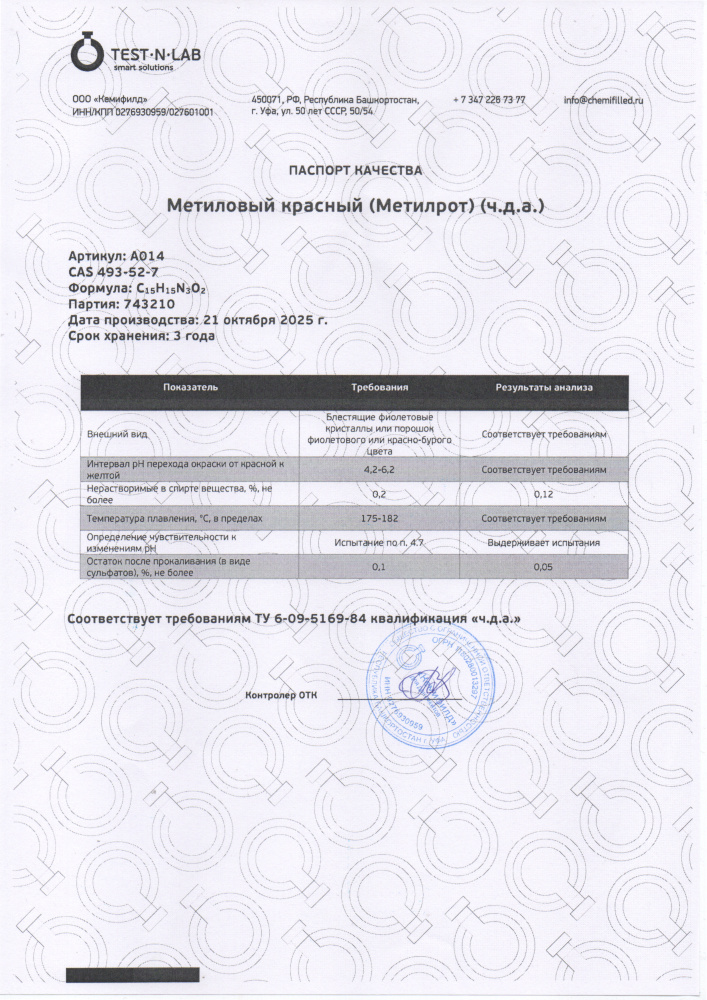 ВискозиметрыГСОЛабораторная посуда из кварцаИндикаторные трубкиКислотыЛабораторные принадлежности прочиеЛабораторная мебельЛабораторное оборудованиеЛабораторная посуда из пластикаЛабораторная посуда из стеклаЛабораторная посуда из фарфораПГС и ГазыПрекурсорыПитательные средыСтандарт-титры (фиксаналы)Термометры и АреометрыФильтровальная бумага и Фильтры обеззоленныеХимические реактивы
