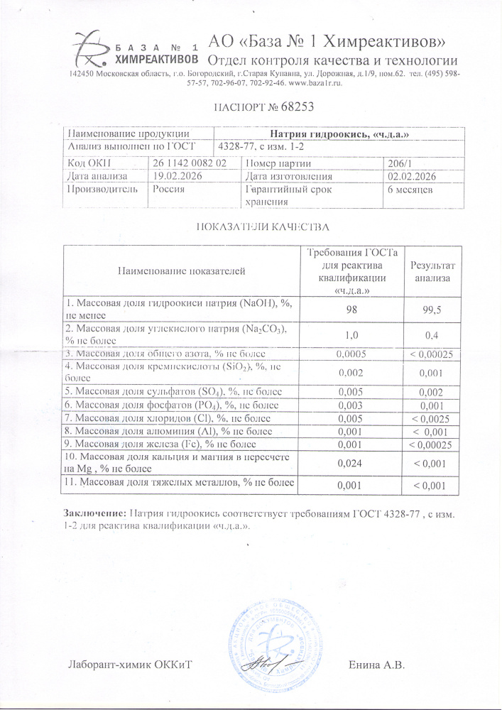 —Натрий гидроксид гранулир. "чда" (ГОСТ 4328-77)