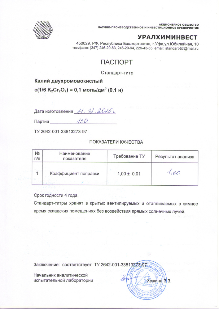 СТ калий дыухром 150